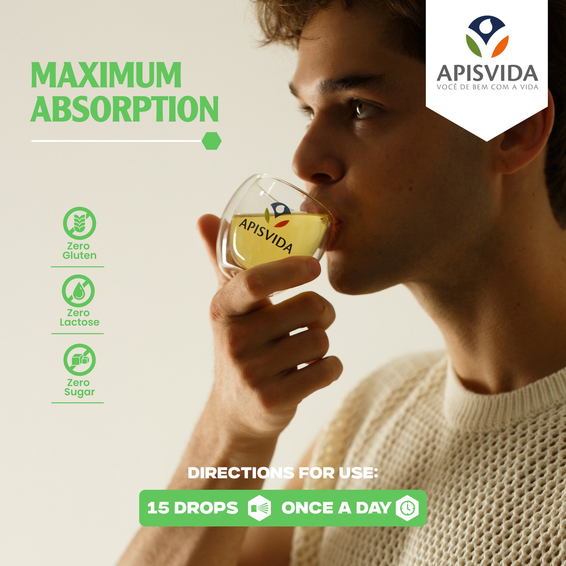 Alcohol-free, gluten-free, lactose-free, and sugar-free green propolis.
