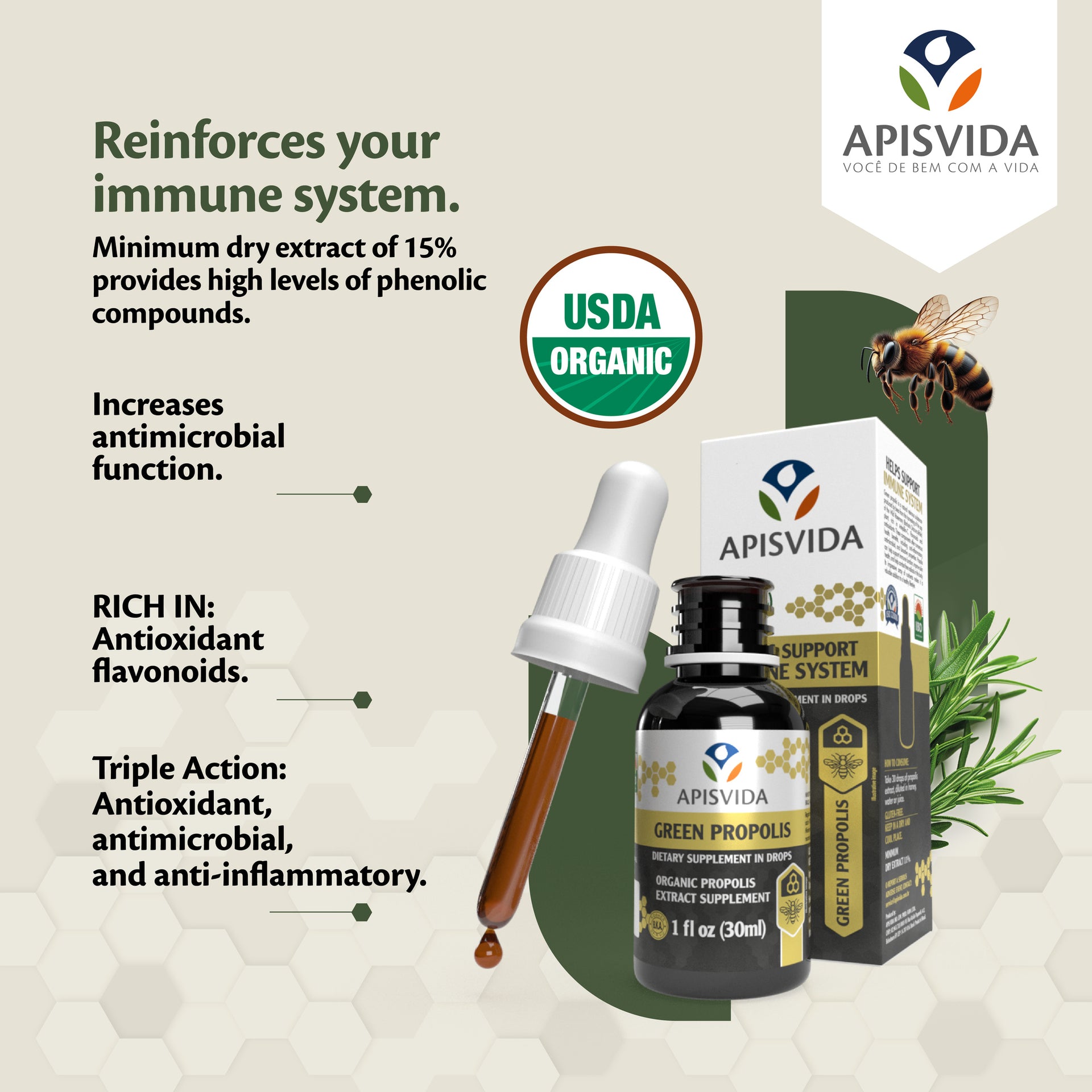 • Made with Organic Green Propolis.