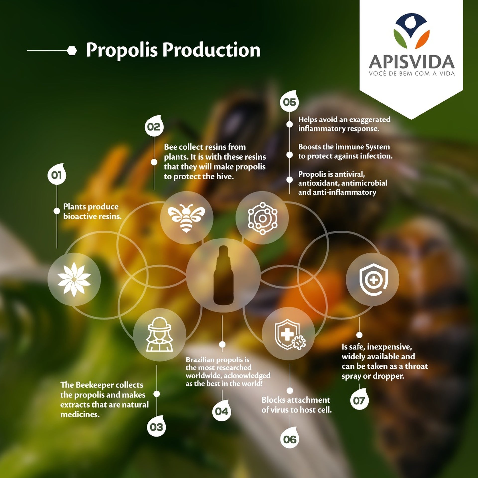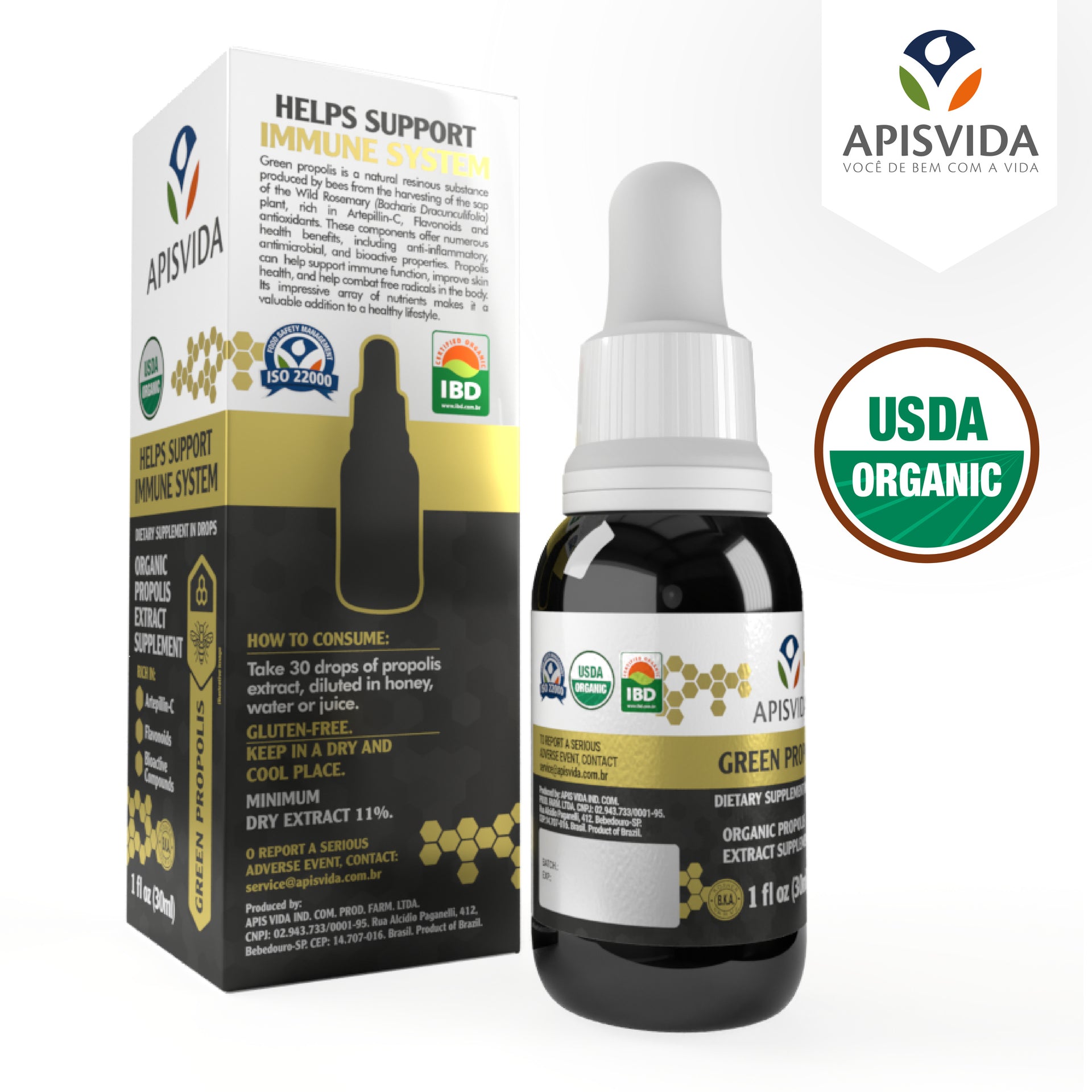 The APISVIDA Organic Green Propolis Extract is a premium product made from organic green propolis, rich in phenolic compounds, especially Artepelin-C. Its organic certification ensures an even purer and 100% natural product.